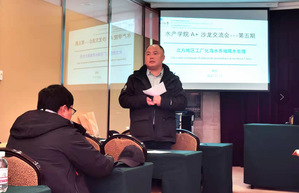 李贤老师以“北方地区工厂化养殖尾水处理“为题,介绍了我国养殖尾水排放标准制定情况和工厂化海水养殖尾水处理进展,与会老师共同探讨了养殖模式未来发展可能方向。