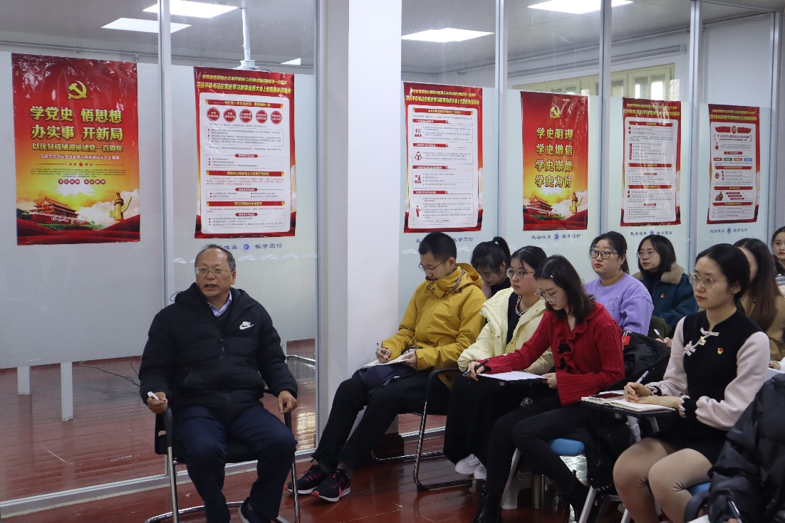2021年12月15日,党员导师宋协法老师以“以史为鉴、开创未来,埋头苦干、勇毅前行”为主题,为支部党员讲授十九届六中全会主题党课。会议由党支部副书记潘玉同志主持。