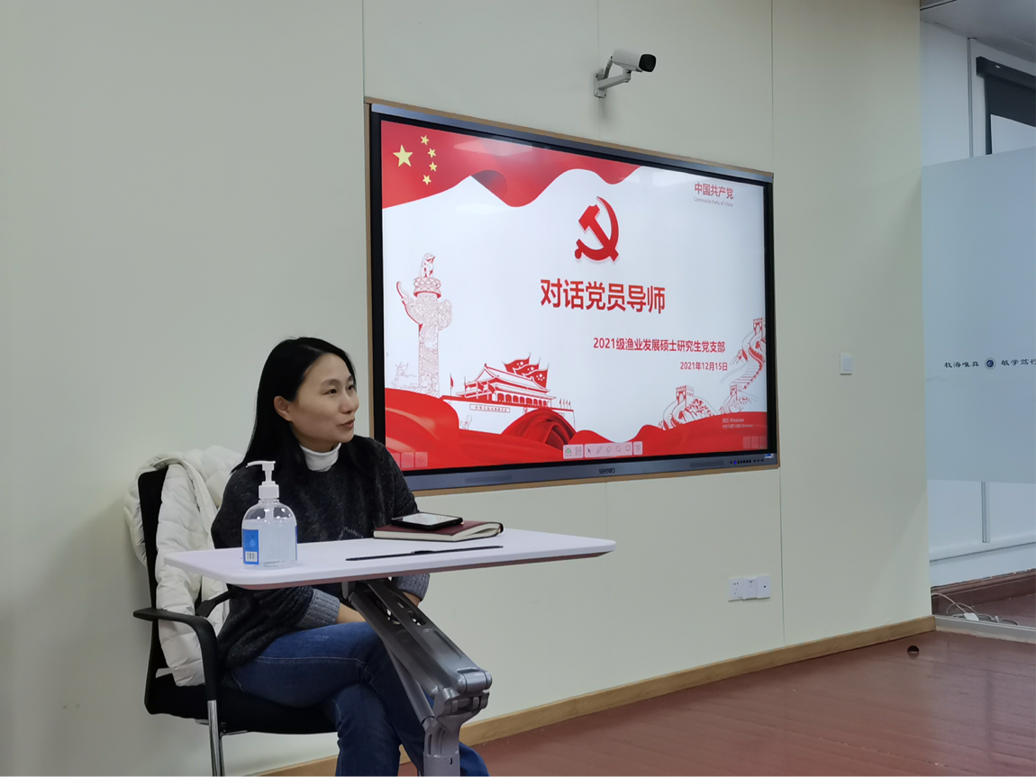 2021年12月15日,澳门彩票 海洋渔业系教工党支部书记陈慕雁教授以“不忘初心,过尽千帆,归来仍是少年”为主题为澳门彩票 2021级渔业发展硕士研究生党支部成员讲授专题党课,会议由党支部组织委员曾超主持。