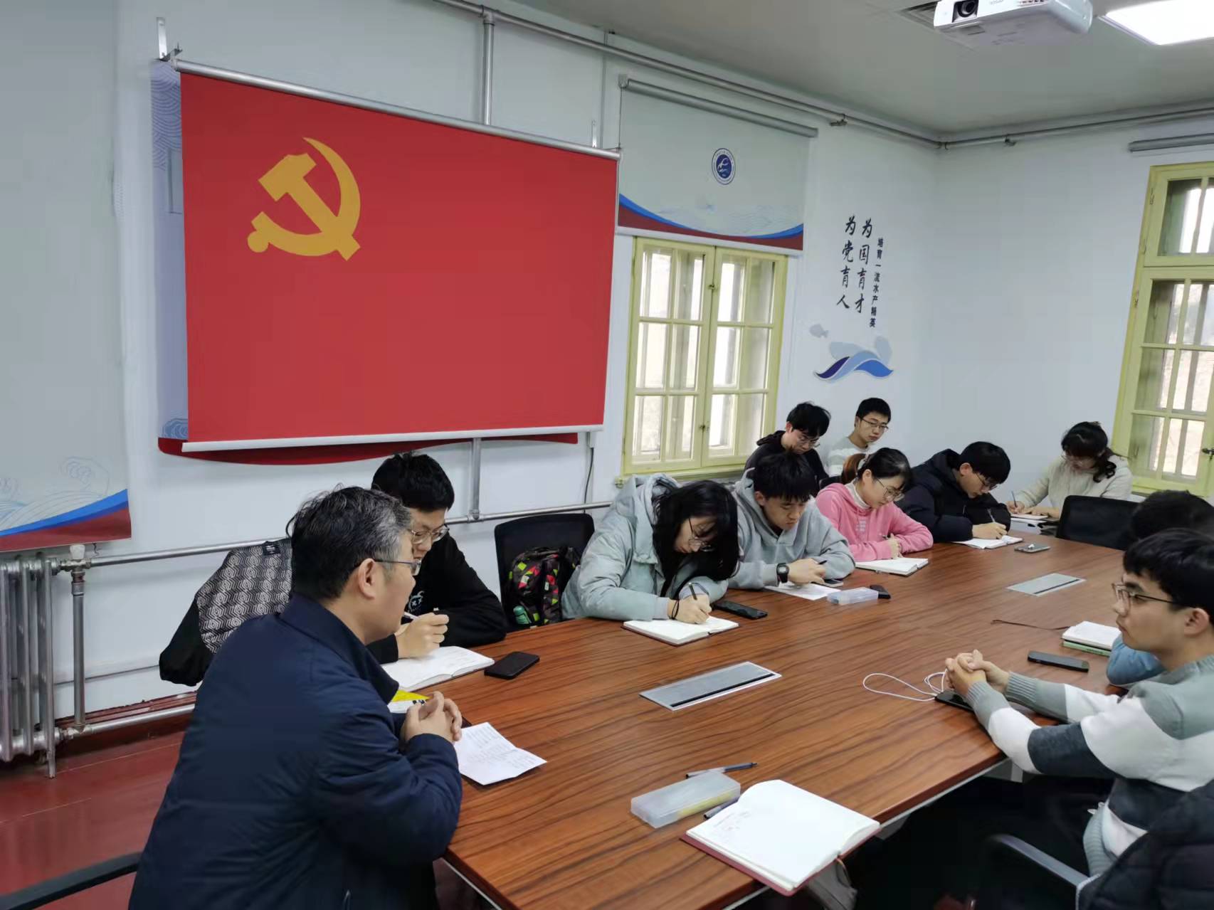 2021年11月30日,澳门彩票 海渔海资本科生党支部主办的“对话党员导师”系列讲座在鱼山校区铭史楼党建活动室举办,党员导师徐宾铎副教授主讲,旨在帮助同学们加深对研究生阶段学习的认识,早日采取行动实现好从本科生到研究生的过渡。讲座由宣传委员王彦霖主持,党支部全体党员参加。