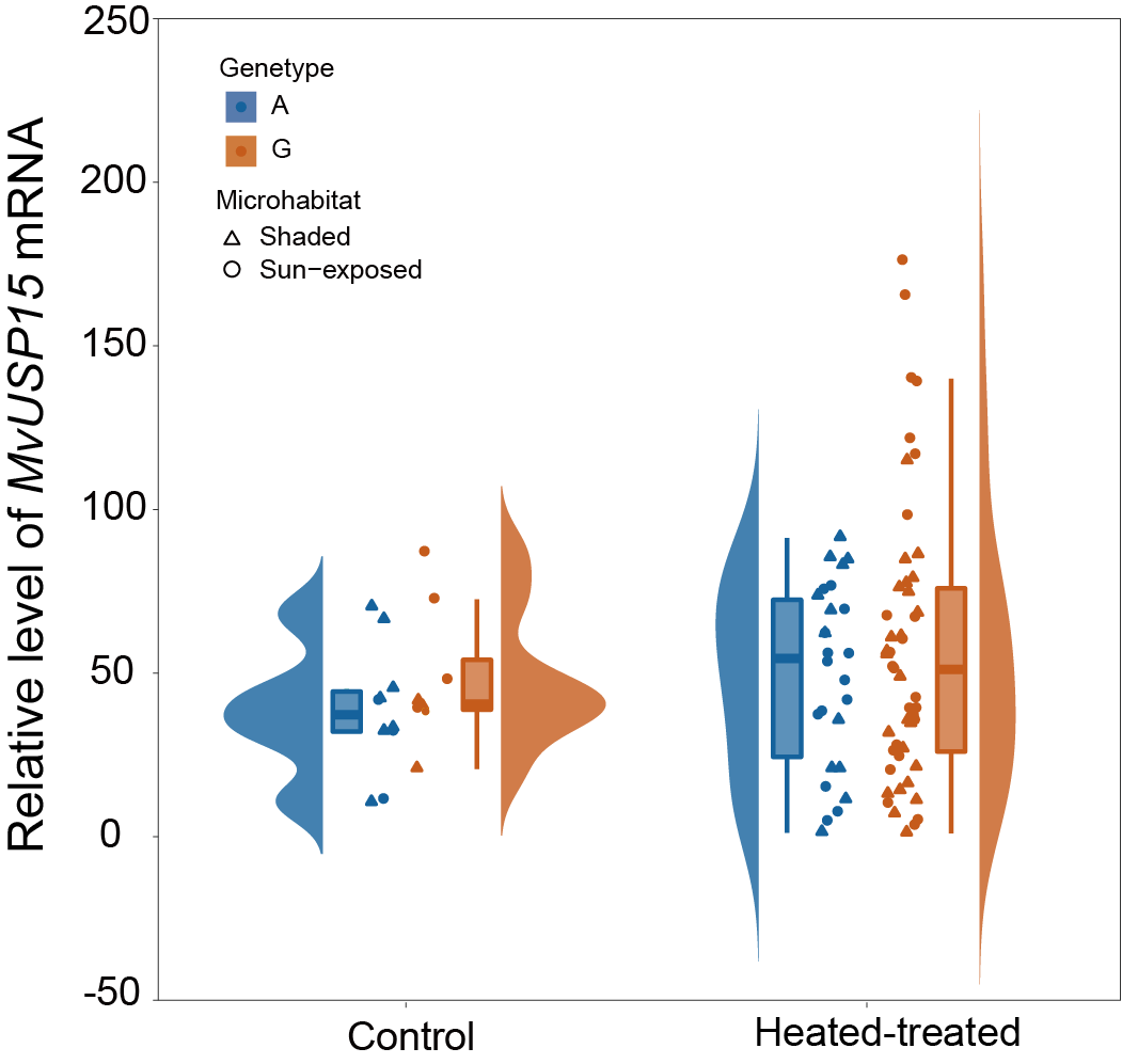 图二:同义突变对高温刺激下的条纹隔贻贝体内USP15基因表达水平的影响