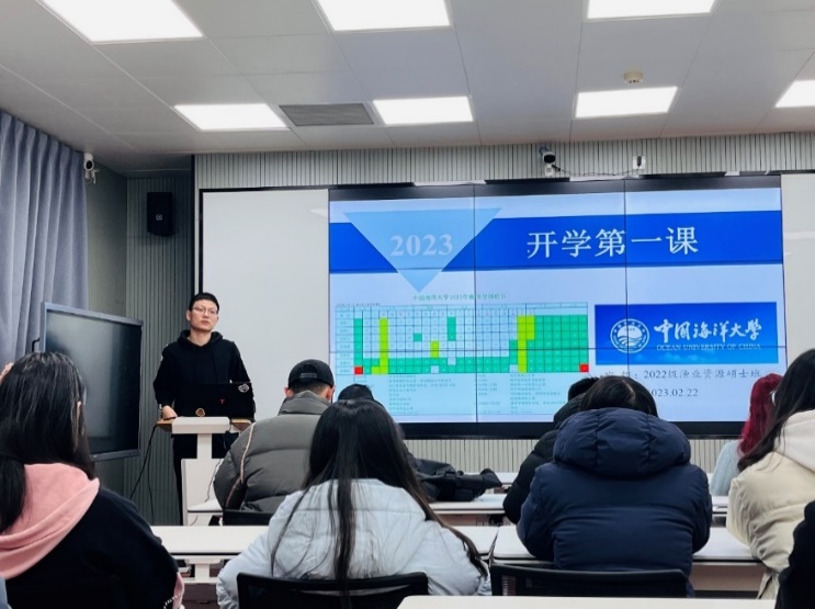 2023年2月26日,2022级海洋渔业科学与技术班于崂山校区4405教室召开“开学第一课”主题班会,班主任尤鑫星老师、辅导员刘鹏老师,以及班级全体同学共同参会。班长通过PPT展示,围绕“爱国、团结、奋斗、科学、互助”五个关键词,从疫情防控、安全教育、考风考纪、心理健康四个方面展开班会教育和学习。集体学习毕,班主任尤鑫星和辅导员刘鹏就新学期澳门彩票 学习、生活中的注意事项进行强调,并分别给同学们送上了新学期的祝福。同学们纷纷表示,通过开展本次班会,大家及时知悉了学校的防疫措施、了解了新学期的教育教学安排,明确了新学期的学习目标,并在班主任和辅导员老师的教导引导下,大家对迎接新学期的学习生活充满了干劲,立志要做好新学期学习计划,过一个充实而有意义的学期。