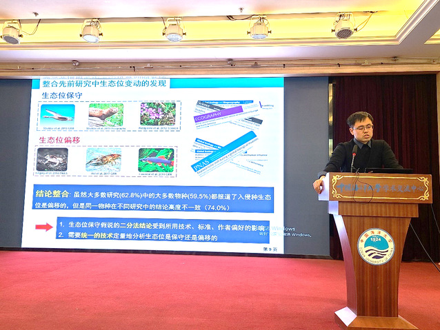 刘春龙教授汇报题目为《全球海洋入侵物种的环境生态位变动》。报告指出环境生态位是一个重要的地理学概念,通过对入侵物种环境生态位变动分析,有助于理解入侵物种如何适应新环境的适应与响应。将入侵物种在原产地与入侵地环境中的适应性相比较,有助于推测未来的气候条件下物种的变化趋势。刘春龙教授表示,未来有望将淡水鱼类入侵风险模型应用到海洋生物入侵物种研究,对揭示全球海洋入侵物种的风险地理格局提出了新的思路。