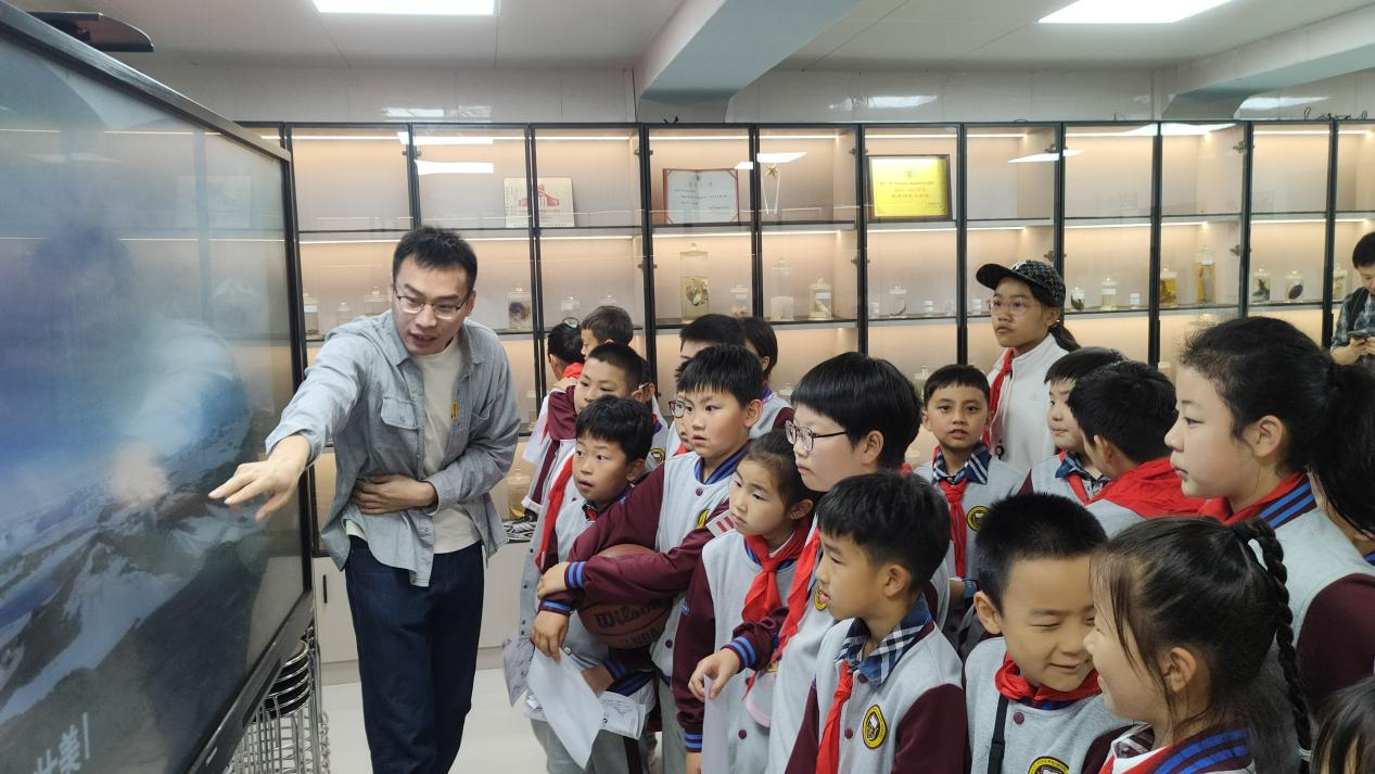 随后,大家来到了极地馆参观南极样品,了解中国海洋大学深远海与极地研究中心的历史和研究内容,学习南极科考方法和样品制备方法。