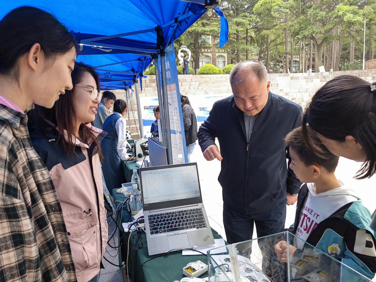 人鱼广场展示了多个由实验室为大家精心准备的实验器材和精美的宣传海报,引得现场观众驻足观看。通过实际操作和演示,使观众能够更直观地理解学科研究的意义所在,并有机会亲自参与其中,十分有趣。