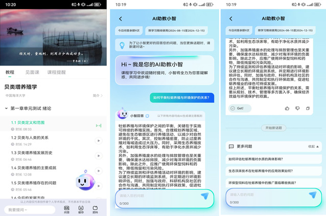 中国海洋大学为积极落实国家教育数字化战略行动,提升数字人才培养能力,推进本科教育教学改革,从牵头成立的全国新农科水产教育联盟(简称:水产教育联盟)数字化教学出发,于2024年秋冬学期,依托智慧树共享平台,全国首批运行7门AI智慧共享课程,充分利用知识图谱和人工智能技术,创新教学模式,为全校乃至水产教育联盟广大师生提供更个性的学习空间、更高阶的学习内容与更智慧的学习方式。