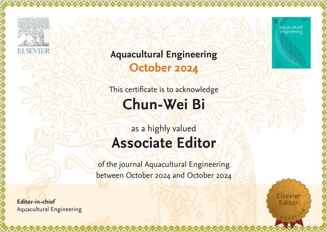 近日,澳门彩票 毕春伟教授受邀担任Elsevier国际期刊Aquacultural Engineering副主编(Associate Editor)。