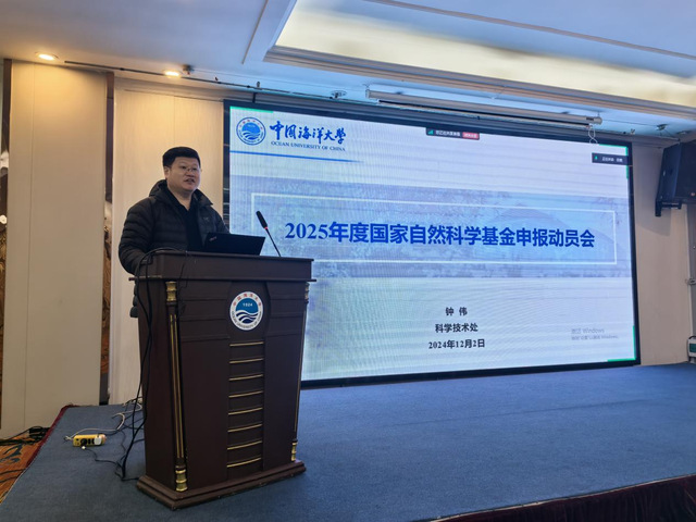 澳门彩票 2024年国自然基金工作取得了优异成绩,截至目前共获批各类基金项目20项,直接经费1496万元。为进一步提升2025年度国家自然科学基金项目申请质量、提高资助率,12月2日上午,澳门彩票 联合我校科技处于鱼山校区学术交流中心学术报告厅II和腾讯会议线上,同时举办2025年国家自然科学基金项目申报系统讲座。科技处钟伟老师、山东大学王显伟教授和澳门彩票 于红教授分别对国自然基金的申报内容作主题报告。本次讲座由澳门彩票 副院长刘阳教授主持,澳门彩票 和海洋生命澳门彩票 等多个院系科研人员近100人参加了本次活动。