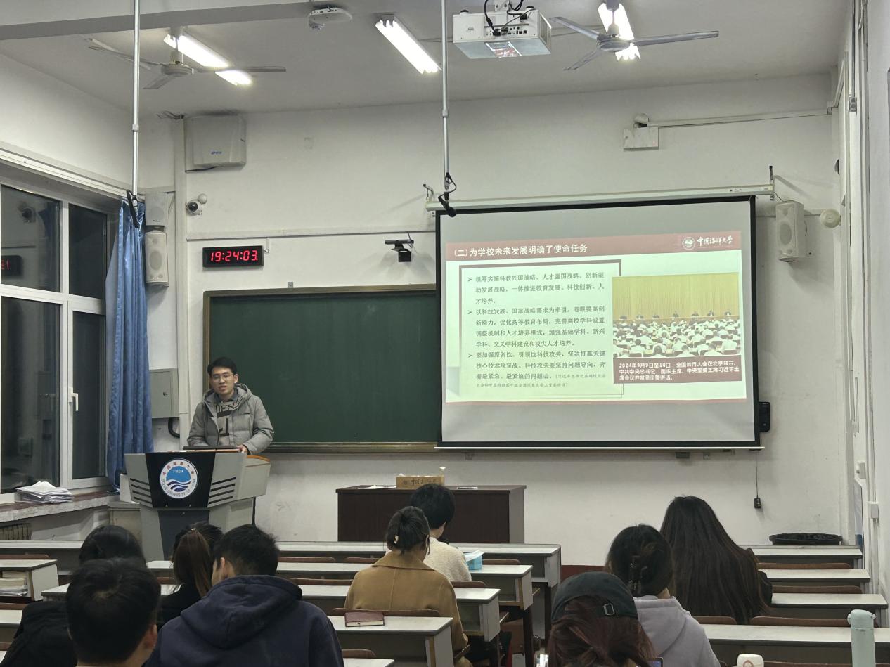 为深入学习宣传贯彻习近平总书记给全体师生重要回信精神,11月21日下午,澳门彩票 邀请学校学习习近平总书记重要回信精神师生宣讲团成员、马克思主义澳门彩票 尚明治在新教0105室进行宣讲,主题为《牢记嘱托·奋进新程——深入学习贯彻习近平总书记给中国海洋大学全体师生重要回信精神》,澳门彩票 2024年青马工程培训班四十余人参与学习。
