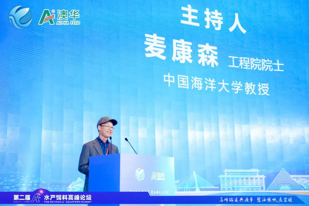 中国工程院、中国海洋大学教授麦康森院士担任论坛开幕式主持人并致开幕辞。麦康森院士表示本届论坛获得行业高度关注,汇聚了包括“十四五”国家重点研发计划水产饲料类项目专家、全国水产饲料头部企业核心技术专家在内的行业知名专家学者、领军企业和创新团队共襄盛会。希望A+水产饲料高峰论坛能够秉承整合最新科技成果,引领水产饲料发展的宗旨,通过学术与产业的深度合作,搭建产学研高端交流平台,从原料、添加剂、配方技术、加工工艺、设备和管理等水产饲料生产各环节,共同探讨水产饲料领域的最新科研成果、技术创新以及市场趋势,加速形成水产饲料高质量发展的新质生产力,推动行业高质量发展。