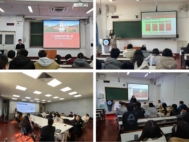 根据不同年级学生群体的特点和需求,各带班辅导员开展了有针对性的学业规划指导。针对毕业年级,辅导员介绍了往届学生考研、就业情况,鼓励同学们做好考研复试准备,及时关注就业信息。针对大二、大三学生,辅导员为同学们详细介绍了免试攻读研究生的选拔条件与具体流程。针对大一学生,辅导员和同学们一起分析了第一学期期末成绩,引导学生以认真积极的态度对待课程,同时就综合素质测评相关问题进行了解答。各本科班级的班主任也积极参与“开学第一课”,他们结合自身的求学经历和职业生涯,强调了扎实掌握基础知识和培养专业思维的重要性,为同学们的个性化发展提供了更广阔的视角,帮助同学们合理规划未来。