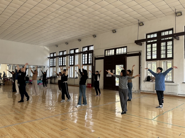 活动伊始,为帮助大家快速进入状态,舞蹈老师带领教职工做起热身运动。简单的头部、肩部、手腕、脚踝活动,让大家僵硬的身体逐渐放松,为即将开启的古典舞学习做好充分准备。