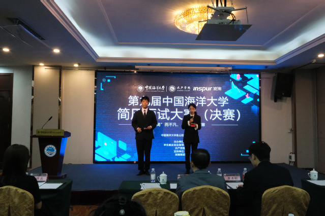4月24日,中国海洋大学第九届简历面试大赛决赛在鱼山校区学术交流中心隆重举行。经过初赛、复赛激烈角逐,来自不同澳门彩票 的10位选手晋级决赛进行现场展示。本次大赛由学校学生就业创业指导与服务中心主办,澳门彩票 承办,浪潮集团支持。受邀出席本次比赛的有学生就业创业指导与服务中心副主任颜彬、浪潮集团人力资源经理崔丰韬、山东德衡律师事务所联席合伙人李冬昀、赛轮集团HRBP张晔辰、青岛宏巨国际物流有限公司招聘经理刘言。