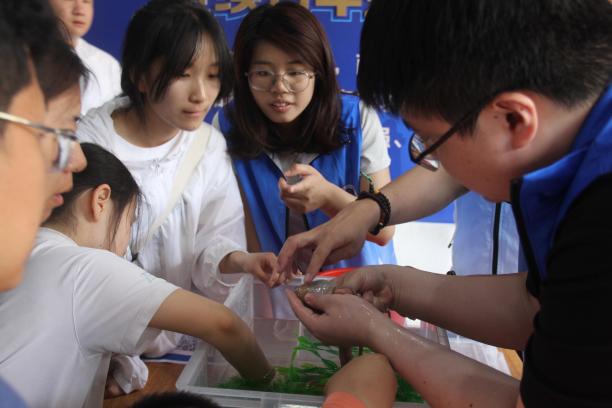 在鱼山校区逸夫科技馆、南极标本馆、敏行馆的参观环节,青少年们近距离观察了丰富的海洋生物标本、极地科考成果及水产养殖设备。南极标本馆的珍稀鱼类标本、逸夫科技馆的海洋牧场模型等展品,让学生们直观感受到海洋科学的广博与深远。