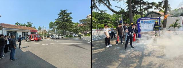 消防员现场讲解、教授、演示了消防栓和消防车的各部分功能和使用方法。此外,师生还进行了干粉灭火器、二氧化碳灭火器的现场使用演练。