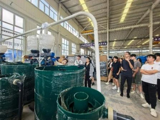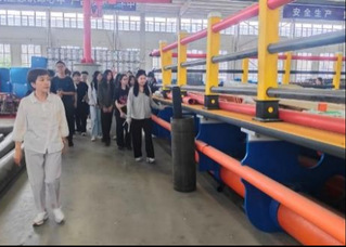 在企业陈海伟副总经理的陪同下,师生们深入企业生产一线,先后参观了设备制造车间、研发测试区和成果展示厅,系统了解了公司在海洋牧场装备制造、智能养殖系统等领域的技术创新与发展规划,以及微滤机智能设备、近海养殖网箱及消波减浪堤等先进海上渔业设施的设计原理与应用场景。公司技术人员现场演示了设备操作流程,并对同学们提出的技术问题进行了解答和交流互动。