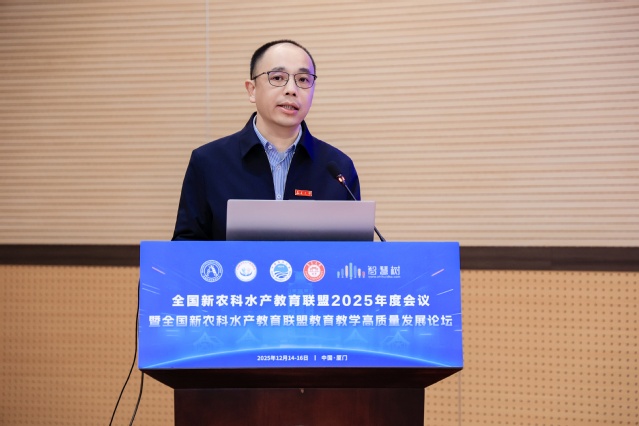 12月15日,全国新农科水产教育联盟2025年度会议暨全国新农科水产教育联盟教育教学高质量发展论坛在厦门顺利召开。本次主题为“新农科引领·数智赋能:共筑水产教育高质量发展新生态”。会议由全国新农科建设中心指导,全国新农科水产教育联盟(简称水产教育联盟)、教育部水产养殖学专业虚拟教研室主办,集美大学、水产科学与技术国家级实验教学示范中心(集美大学)承办。