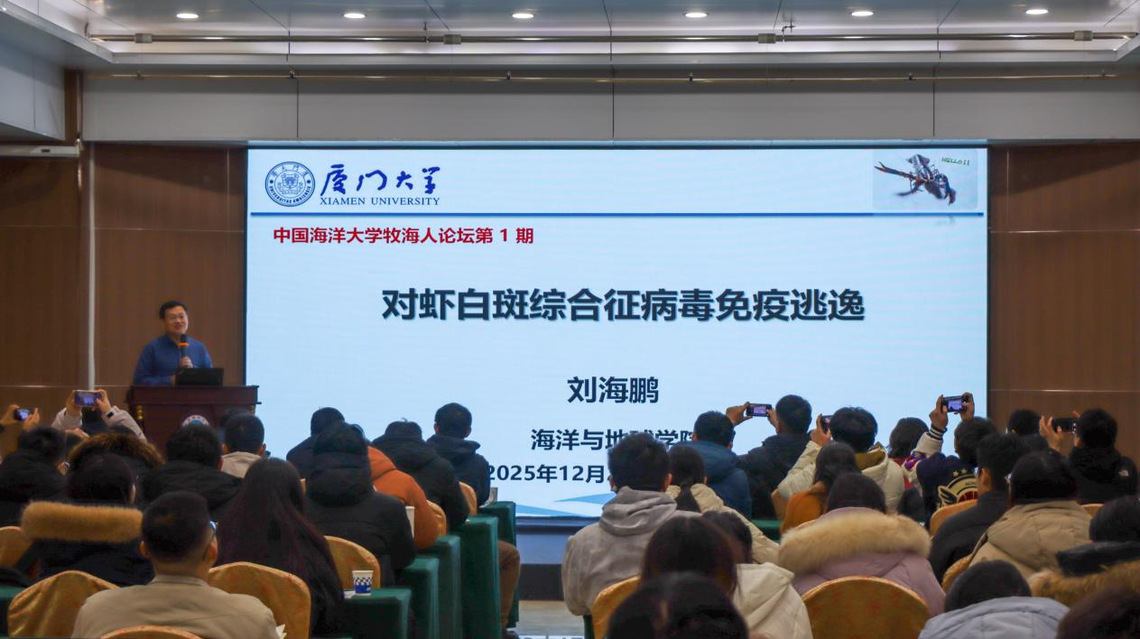 宁波大学李成华研究员以“刺参新颖 NLRC4 受体家族成员功能的再认识” 为题,解析了刺参 NLRs 蛋白独特结构与免疫功能,为阐明其先天免疫机制提供新视角;厦门大学刘海鹏教授聚焦对虾白斑综合征病毒(WSSV)免疫逃逸机制,揭示病毒侵染、逃逸宿主免疫的关键分子机制,为抗病毒策略开发提供重要靶点。