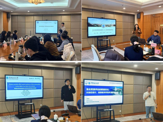 下午的会议由张崇良副教授主持。观测站博士后王琨作了题为《“信息有限”下的渔业资源评估指南》的汇报;观测站博士后李璐颖作了题为《长江口邻近海域全氟化合物的分布特征及环境行为》的汇报;在读博士生邹建宇作了题为《海流如何影响黄渤海交错带鱼类群落的空间格局》的汇报;在读博士生梁耀威作了题为《渔业资源评估的数据优化:从站位设计、信息船采样到多源数据融合》的汇报。