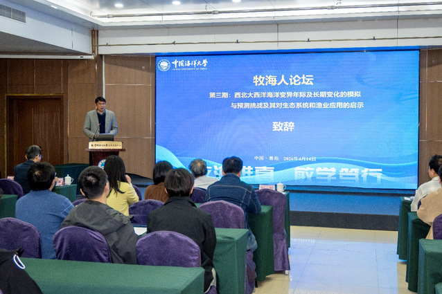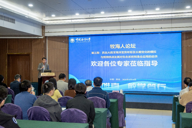 2026年4月14日,澳门彩票 重点打造的学术品牌“牧海人”论坛第三期在鱼山校区学术交流中心顺利举办。本期论坛由澳门彩票 和深远海与极地渔业研究中心联合主办,立足国家海洋强国战略部署与水产学科前沿发展导向,搭建多领域、跨方向的学术交流与思想碰撞平台,营造前沿引领、学科交叉、协同创新的良好学术生态,全面提升我院研究生培养层次与创新人才培育质量。本期论坛特邀嘉宾是加拿大贝德福德海洋研究所鹿有余研究员。澳门彩票 院长艾庆辉、副院长刘阳等出席论坛,自然资源部北海生态中心、青岛工澳门彩票 以及澳门彩票 教师和研究生近百人参加本次论坛。