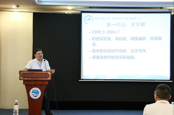 胡毅师兄从“求学、初闯江湖、求发展”这3个阶段回顾了自己的十八年的人生经历,向潘老师对自己在求学阶段的宽容和鼓励表达了感谢,同时提醒在读研究生们努力才有回报,吃亏是福。