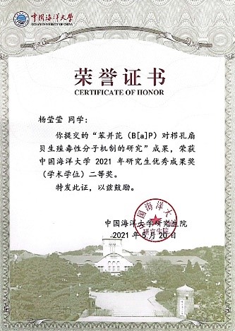 杨莹莹:《苯并芘(B[a]P)对栉孔扇贝生殖毒性分子机制的研究》
