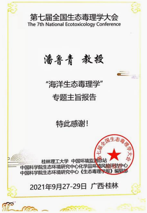 生态环境研究中心《生态毒理学报》编辑部联合主办。研究室潘鲁青教授受邀参加了此次大会。