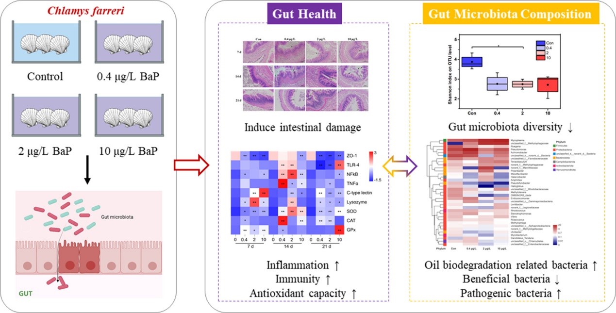 2. Impacts of benzo(a)pyrene exposure on scallop (Chlamys farreri) gut health and gut microbiota composition (DOI: 10.1016/j.scitotenv.2021.149471)