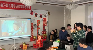 活动伊始,主持人依次介绍了参会的毕业生代表,他们的到来为这场年度盛典增添了熠熠光彩,也彰显了实验室在人才培养工作中的显著成就。紧接着,潘鲁青教授满含深情与期许,发表了真挚恳切的致辞,总结了研究室过去1年的工作,对同学们未来工作寄予厚望,并祝贺同学们新春愉快。在节目表演环节中,同学们热情高涨,日常实验室里严谨的“科研人”,走上舞台化身为舞者、段子手、歌手,用才艺点燃现场气氛,为大家带来了一场欢乐的岁末狂欢。2024级硕士女生献上活力四射的舞蹈《可爱摆》;2024级硕士男生带来舞蹈串烧和歌曲《童》,将现场氛围推向沸点;2023级硕士同学带来配音节目《甄嬛传--方言版》;全体博士生带来诗朗诵《我爱科研》,用诙谐的语言风格表达了大家对科研的热爱。同时,在轻松愉快的游戏互动环节中,通过“Emoji猜成语”、“原地踏步”、“你来比划我来猜”等趣味游戏,师生们不仅释放了过去一年的压力,更增进了研究团队间的默契和信任。整场年会高潮迭起、精彩纷呈,笑声、掌声、欢呼声交织不断。