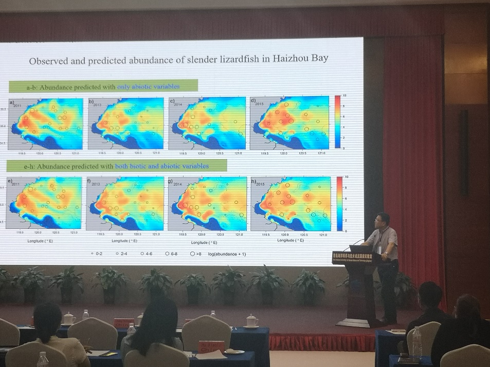 2019年9月17日至18日,研究室薛莹教授和1名硕士研究生参加了在青岛海洋科学与技术试点国家实验室举行的鳌山论坛“现代海洋与水产生物技术论坛”。此次论坛由海洋试点国家实验室和中国海洋大学共同主办,海洋渔业科学与食物产出过程功能实验室、澳门彩票开奖结果查询网站 、中国水产科澳门彩票 黄海水产研究所和美国马里兰大学联合承办。论坛为期两天,设置了专家报告专场和学生报告专场,来自中外高校和科研机构的23名专家和8名博士生在会议上分享科研成果,探讨学术问题,对接合作伙伴,谋求共同发展。该论坛旨在了解海洋生物技术和渔业领域的最新成果,探讨海洋生命科学中的关键科学问题并达成共识,促进国际层面上的学术交流。此外,论坛重点对接了研究生的培训和交流项目,为国际上海洋科学领域青年人才的培养打下基础。薛莹教授和张云雷博士生分别作了题为《Developing a new framework to incorporate prey abundance in species distribution models》和《Optimization of environmental variables in habitat suitability modeling for mantis shrimp Oratosquilla oratoria in Haizhou Bay and adjacent waters》的口头汇报,获得了国内外专家一致好评。此次论坛的举办为中国海洋大学和马里兰大学在人才培养和科学研究方面的深度合作打下坚实的基础,开创了崭新的局面。