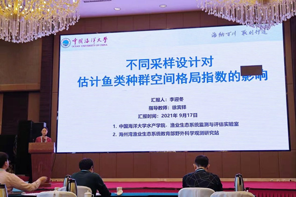 会议上,徐宾铎老师做了题为《近海渔业生态系统监测设计及优化》的口头汇报;马依宏、高元新、李迎冬分别做了题为《采样设计对估计近岸海域鱼类浮游生物丰度的影响》、《应用稳定同位素技术研究海州湾主要鱼类的食性类型和营养来源》、《不同采样设计对估计鱼类种群空间格局指数的影响》的口头汇报。汇报可为近海资源调查设计、海洋生态系统构建等提供理论指导。