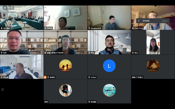 2021年12月26日,海州湾渔业生态系统教育部野外科学观测研究站2021年度学术年会在青岛蓝海大饭店顺利召开。会议采用线上线下相结合方式举行,渔业生态系统监测与评估实验室全体师生参会。会议邀请了纽约大学石溪分校陈勇教授作年会致辞,邀请了扬州大学张来教授、上海海洋大学张帆教授、广东海洋大学侯刚副教授、南海水产研究所张魁副研究员以及纽约大学石溪分校博士后李韵洲、孙铭等专家、学者线上参会并做专题学术报告。