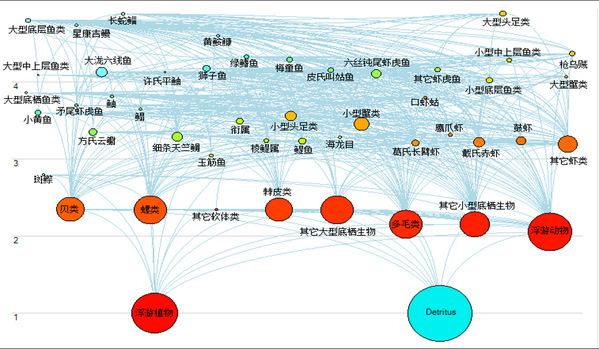 3.3 构建了海州湾食物网,分析了生态系统营养结构特征,量化了食物网能量流动过程,为后续开展海州湾食物网营养动力学研究提供基础依据。
