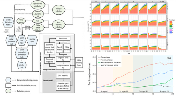 4.1 以MSE为研究工具,解决了一系列渔业资源评估和量化管理中的关键问题:数据充足与数据有限评估方法和管理策略的有效性比较,生态、管理等不确定因素导致的管理风险及误差,以及多种管理措施叠加后的管理效果收益及成本权衡。