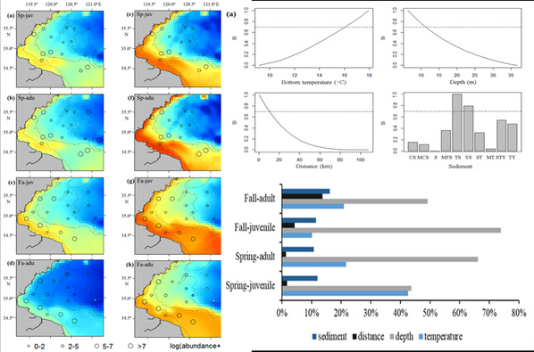 2.2 构建了重要渔业生物不同生活史阶段的栖息地模型,为重要渔业生物栖息地的保护和增殖放流提供科学依据。