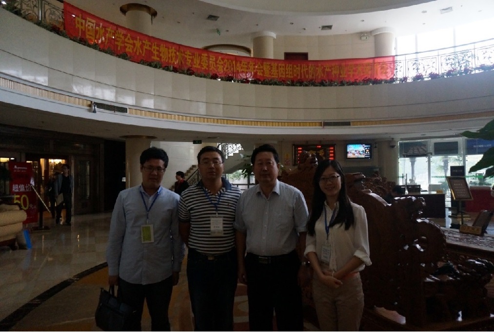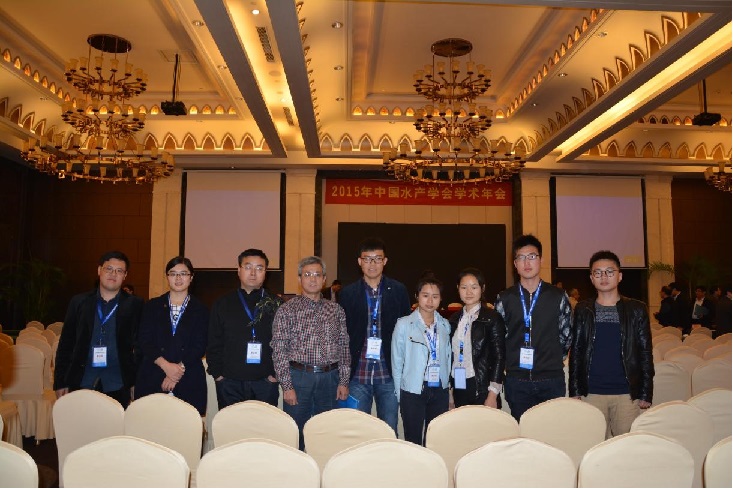 4、2015年中国水产学会年会 2015年11月4~6日,4日报到由中国水产学会主办,海亮集团公司协办的中国水产学会年会在杭州举行,今年年会主题是创新驱动先行。大会期间邀请著名专家做大会主题报告,大会报告后进行分会场专题报告及交流。实验室李吉方副教授、何峰讲师,4位博士研究生和3位硕士研究生出席会议,4位博士研究生分别做了大会交流报告。 ①侯志帅。网箱养殖密度对虹鳟生长,体组分,皮质醇与水质的影响 ②任源远。养殖密度对施氏鲟生长性能的影响及分子生理机制 ③李思平。低盐胁迫下半滑舌鳎不同组织基因组甲基化状态MSAP分析 ④张晓燕。不同盐度条件下花鲈肝脏转录组学特性的初步研究