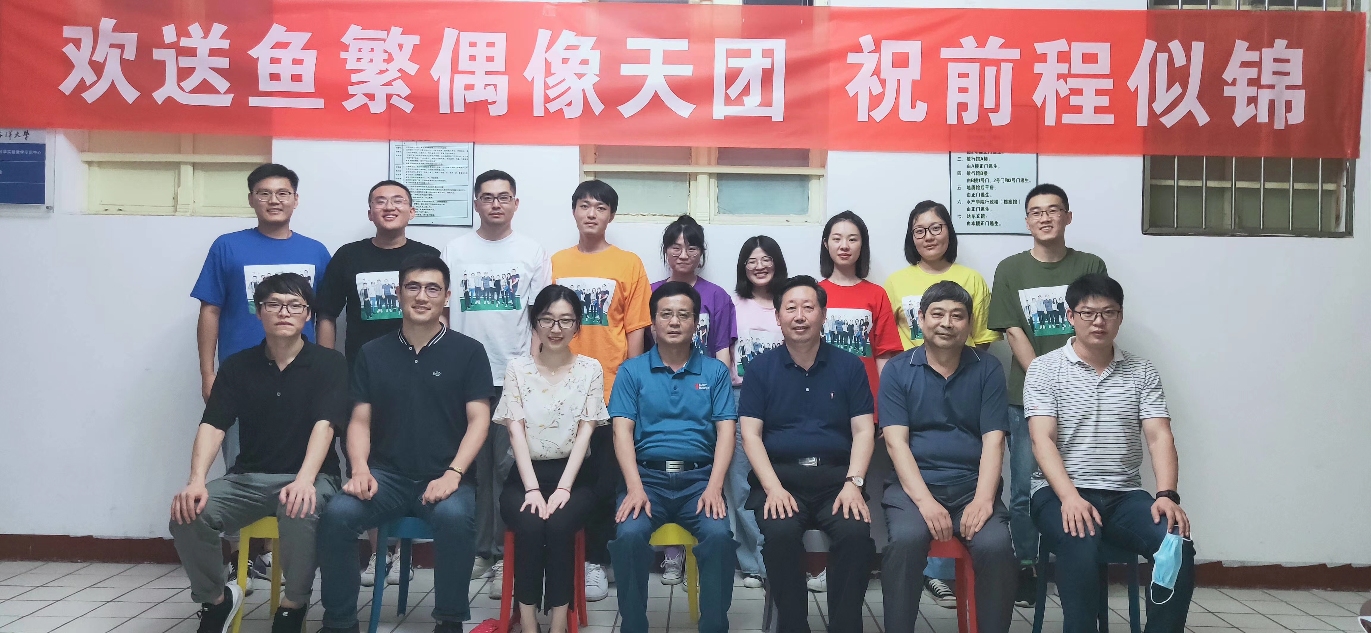 毕业生欢送活动是实验室历年来的传统,2020年7月7日,实验室为2020届毕业生举行欢动活动。受疫情影响,本次活动一改往年毕业旅行、聚餐的模式,以师生座谈会的形式开展。 座谈会上,首先由温海深教授就本实验室近半年工作进行总结,对每一名毕业生取得的业绩予以肯定,并对2020届毕业生顺利毕业表示祝贺。接下来,由实验室教师向毕业生赠送精美的毕业纪念品,并送上毕业祝福。随后,实验室教师向在读研究生赠送实验室最新译著《鱼类繁殖学》,此书由实验室温海深教授、齐鑫副教授主译,实验室多名研究生参与了翻译工作。而后,毕业生逐一发表感言,回顾了在实验室的点点滴滴,对恩师的教诲表示感谢,为师弟师妹送上寄语。座谈会的最后,在校生代表吕里康回顾了与毕业生一起生活、学习、科研的时光,并为毕业生送上祝福。 7月8日上午,实验室全体师生与毕业生在人鱼广场、水产馆进行合影留念,大合影结束后,各位毕业生与导师、同学进行单独合影。 这是一年不同寻常的毕业季,来不及说好久不见就要挥手再见,祝福他们在新的征程上一切顺利,常回家看看。 毕业生信息: