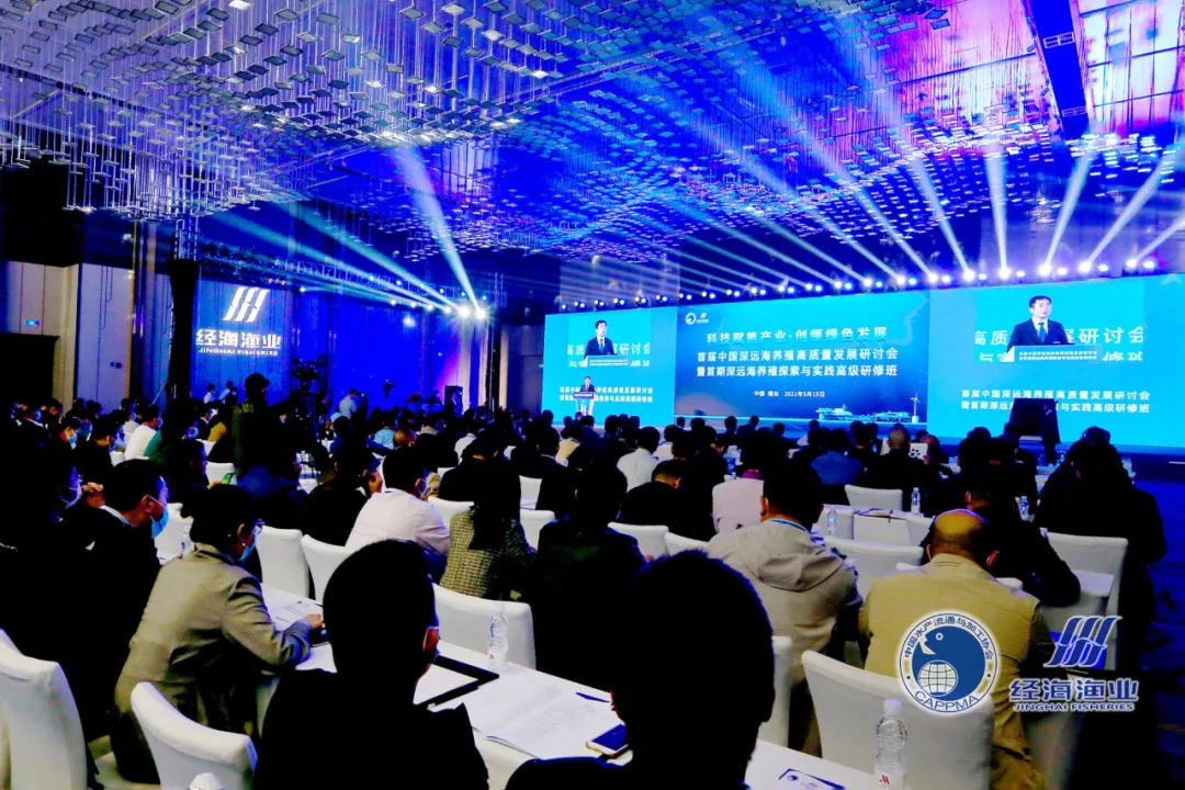 2021514-16日,“首届中国深远海养殖高质量发展研讨会暨首期深远海养殖探索与实践高级研修班”在山东省烟台市举办。研讨会以“科技赋能产业·创领绿色发展”为主题,旨在践行新发展理念,坚持高质量发展,以实施乡村振兴战略为引领,以满足人民对优质水产品和优美水域生态环境的需求为目标,探索深远海绿色养殖模式,建设深远海大型智能化养殖渔场。