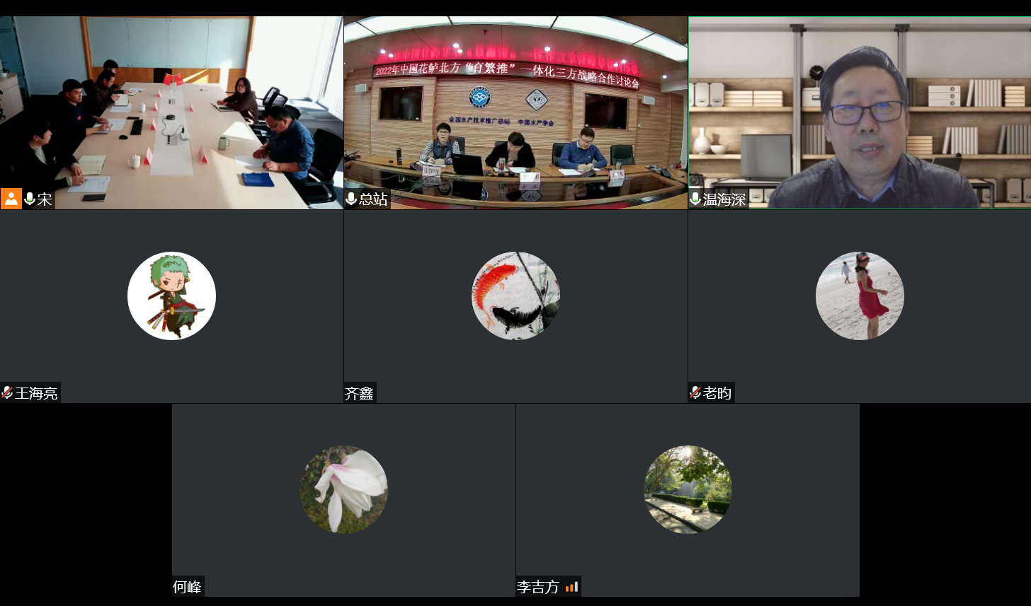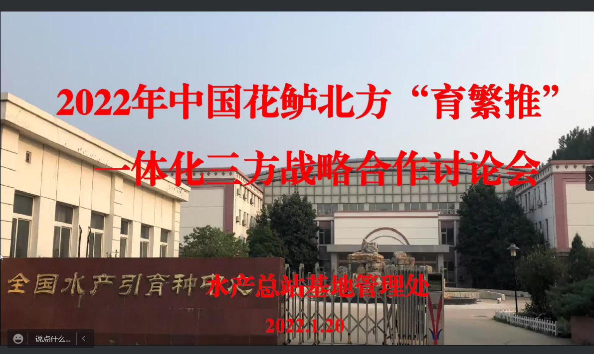 2022120日下午,由烟台经海海洋渔业有限公司(经海渔业)发起,全国水产技术推广总站(水产总站)、澳门彩票开奖结果查询网站 (中国海大)作为技术支撑的【中国花鲈北方“育繁推”一体化战略合作讨论会】,通过腾讯会议采用线上线下形式召开。水产总站基地处李刚处长、王庆龙副处长、张凯强实验师,经海渔业总经理郭福元、科研部经理史春芳,澳门彩票开奖结果查询网站 温海深教授、李昀教授等15人参加研讨会。