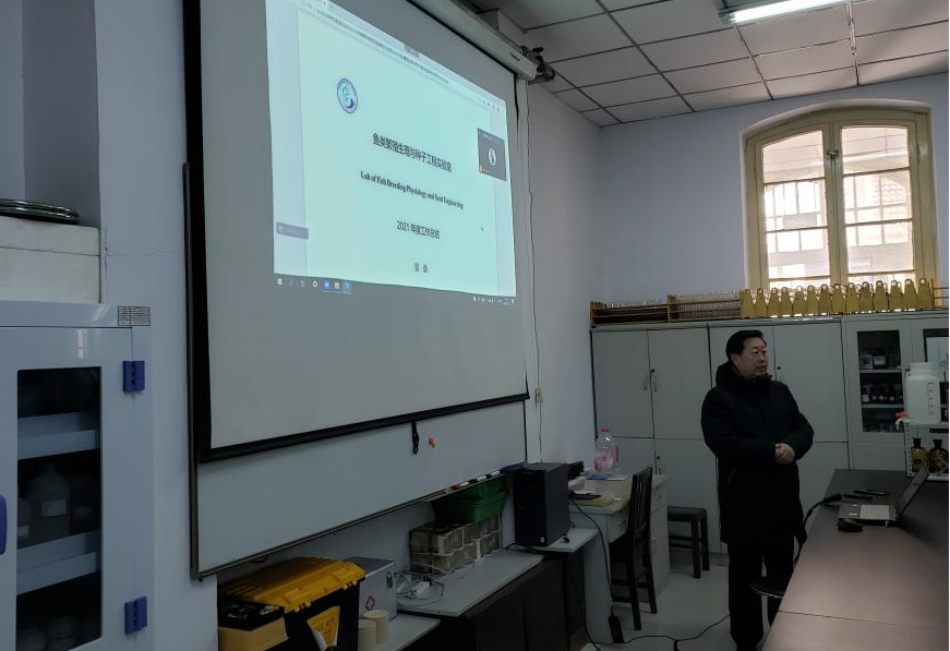 会议由温海深教授主持,会上,实验室负责人温教授通报了实验室2021年工作进展,他首先介绍了海水养殖教育部重点实验室的组织与运行,鱼繁实验室年度大事记、新增及在研科研项目、科研进展、科技成果、人才培养、开放与交流等方面介绍了实验室在过去一年开展的工作和取得的成果。随后,齐鑫副教授对新学期文献分析和年度工作总结的内容做了新的要求,他要求工作总结要讲明白实验的原因、过程、结果及讨论和问题解决的方法;文献分析要打破仅停留在翻译的现状,深入挖掘文献的优势和亮点。