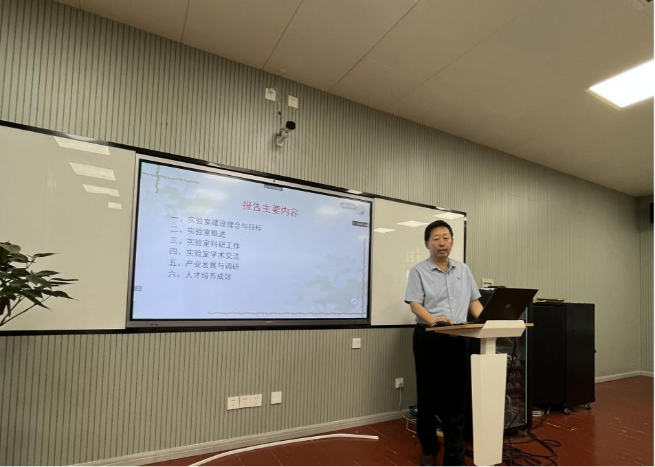 会议由齐鑫副教授主持,实验室负责人温海深教授首先介绍了实验室的教师团队。接着,温教授从实验室理念与目标、实验室与实习基地、科研任务、科研工作进展、学术成果、学术活动、产业调研、人才培养成效、业余活动等多方面,对实验室进行了全面的介绍。