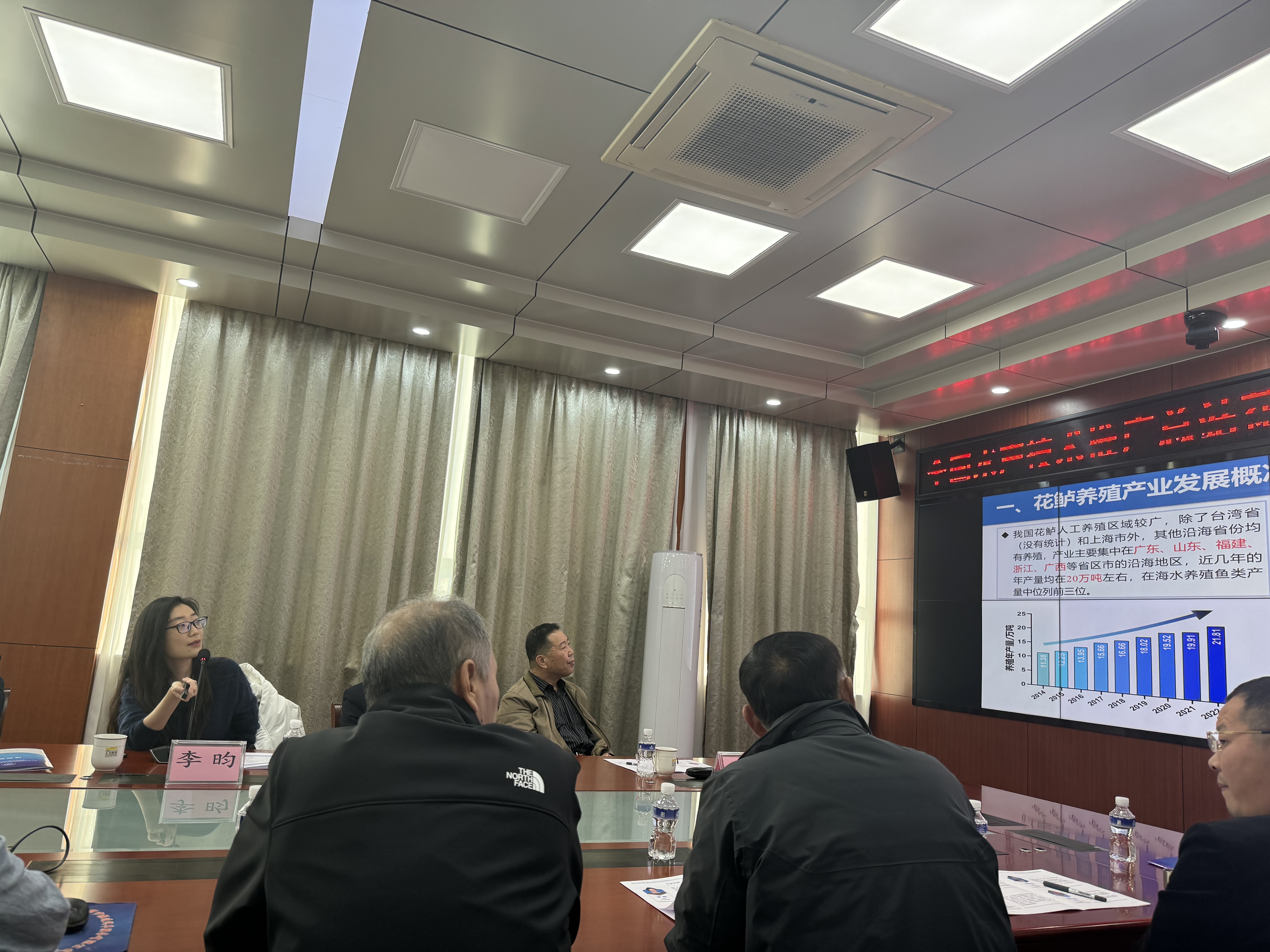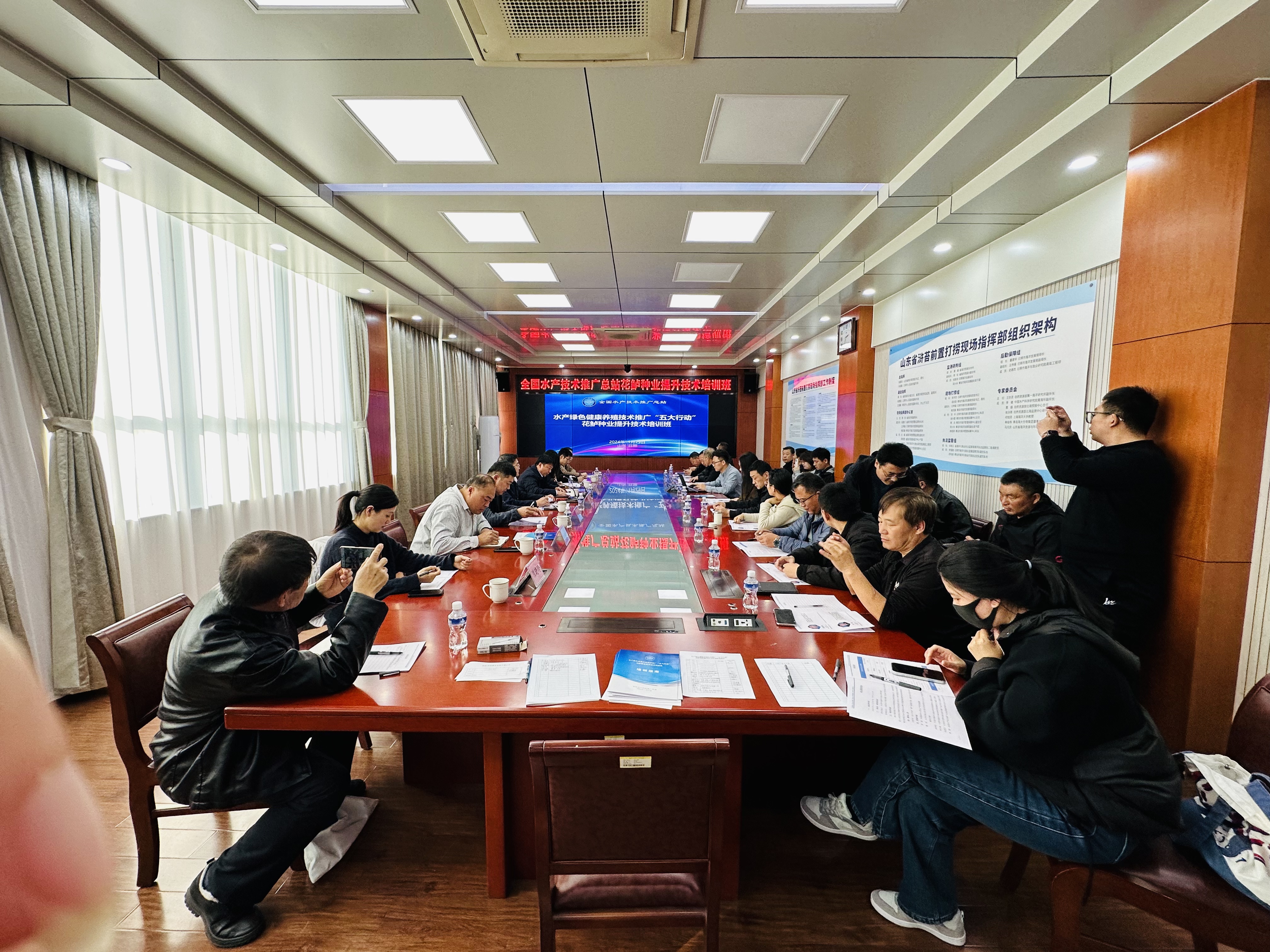 2024年11月29日,花鲈种业提升技术培训在山东省日照市举办,主要面向日照市“五大行动”骨干基地代表及海水鱼养殖主体代表。培训由全国水产技术推广总站主办,日照市海洋与渔业研究院以及山东省日照市渔业技术推广站协办,全国水产技术推广总站日照海水良种示范基地承办。 相关领域领导和专家围绕花鲈养殖技术、疫病防控技术和水产投入品使用注意事项等养殖主体关心的问题进行培训授课,李昀教授受邀做“花鲈产业发展概况及遗传改良研究进展”主题讲座。培训结束后,各领导、专家以及培训人员共同参观总站日照海水良种示范基地花鲈亲本及苗种培育现场。