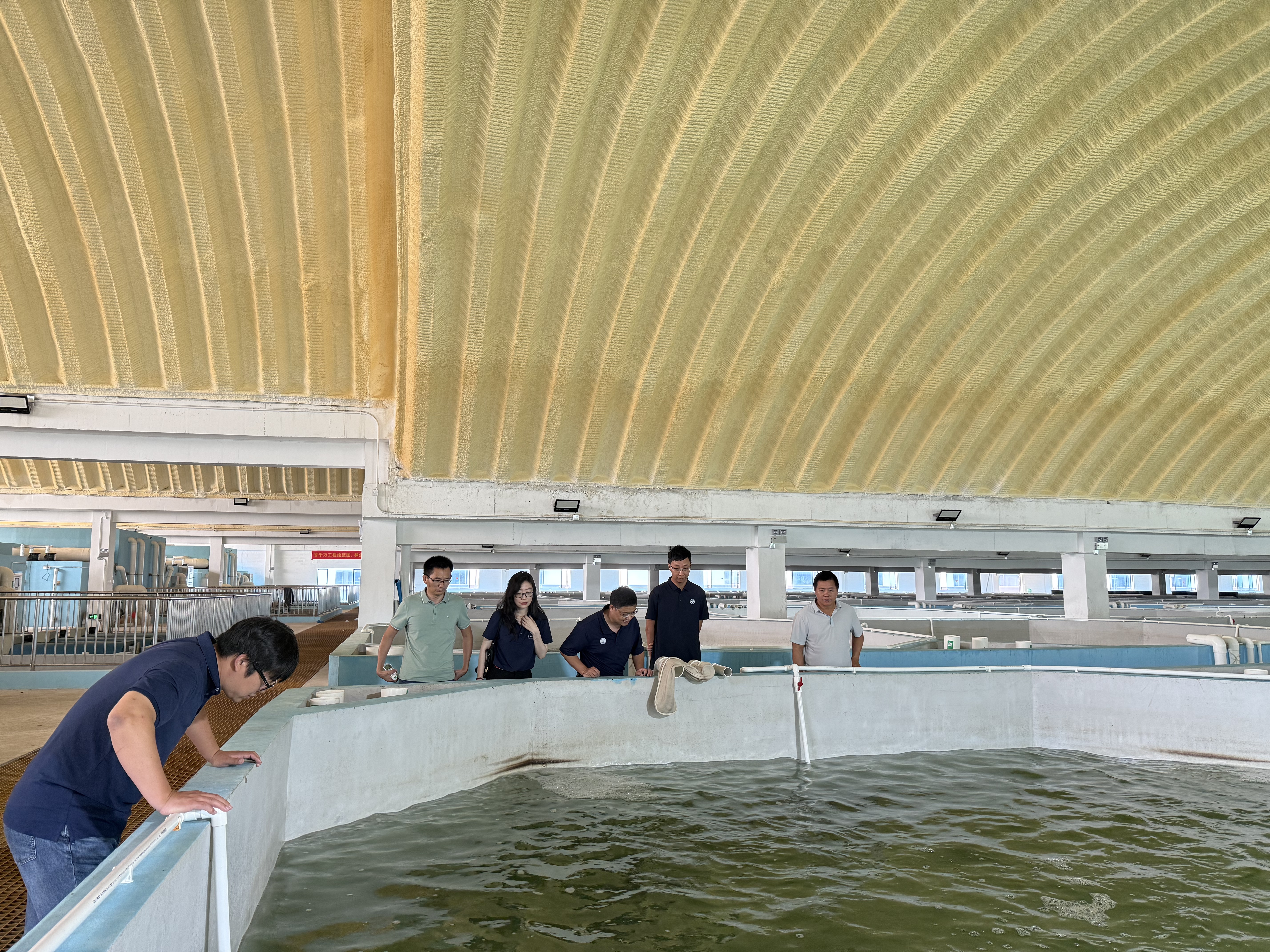 参观水产动物疫病防控与健康养殖全国重点实验室 8月18日上午,温海深教授一行前往珠海市海洋发展集团飞沙基地进行参观交流,南方海洋实验室高级工程师朱志明、李朝政教授、王牧骅副教授、珠海海发种业产业园发展有限公司技术负责人陈光立全程陪同。重点对珠海本地化花鲈繁育设施设备进行了参观,包括亲本暂养池塘、亲本保种循环水车间、亲本繁殖车间,苗种培育车间,控温设施设备,室外育苗池塘等。参观后,双方围绕本年度花鲈繁育工作进行了座谈,主要包括花鲈繁育设施设备的准备和试运行、北方花鲈受精卵的孵化和苗种培育、本地化花鲈亲鱼的繁育。