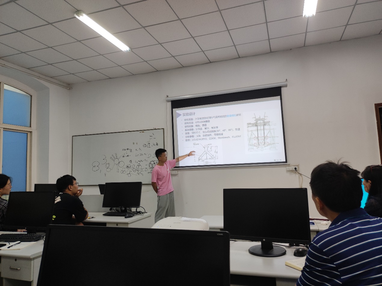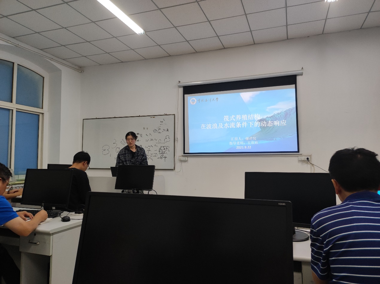 接下来,3名研究生依次进行了工作汇报。蓝恭海同学分享了题为“基于CFD-DEM的投饵机输送过程模拟”的汇报;李林杰同学介绍了题为“物种分布模型推测气候变化对大头鳕未来分布的影响”的相关内容;谢君仪同学汇报了“筏式养殖结构在波浪及水流条件下的动态响应”相关研究进展。