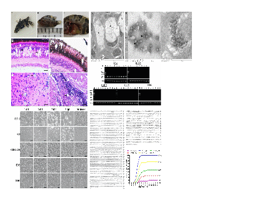 神经坏死病毒( nervous necrosis virus,NNV) 是一种世界范围内流行、严重危害多种海水和淡水鱼类的传染性病原。本研究从山东省烟台市某养殖场采集到患病珍珠龙胆石斑鱼幼鱼,通过组织病理检查、TEM观察、RT-PCR检测、细胞分离培养、全基因组扩增、系统发育分析等,分离获得一株病毒,并对其进行鉴定。结果显示,患病石斑鱼视网膜及脑组织中存在大量空泡化病变。TEM观察发现,患病幼鱼视网膜和浓缩的病毒液中均存在大量直径25 nm左右,呈二十面体的病毒粒子。RT-PCR结果显示,仅使用针对NNV的特异性引物可扩增出大小约255bp的特异性条带,经BLAST比对分析,扩增产物与 GenBank 中公布的多株NNV RNA2基因有极高相似性。接种组织匀浆液后,SSN-1和GB细胞出现了典型的细胞病变效应(CPE)。十二烷基硫酸钠-聚丙烯酰胺凝胶电泳(SDS-PAGE)图谱显示,该病毒有明显的2条蛋白带。克隆获得其RNA1与RNA2序列,基于RNA2的系统进化树结果表明,该毒株与15株已报道的NNV聚为一支,均属于石斑鱼神经坏死病毒型(RGNNV)。综合实验结果可以确认该病毒为一株基因型为RGNNV型的神经坏死病毒,并将其命名为CNPgg2018株。