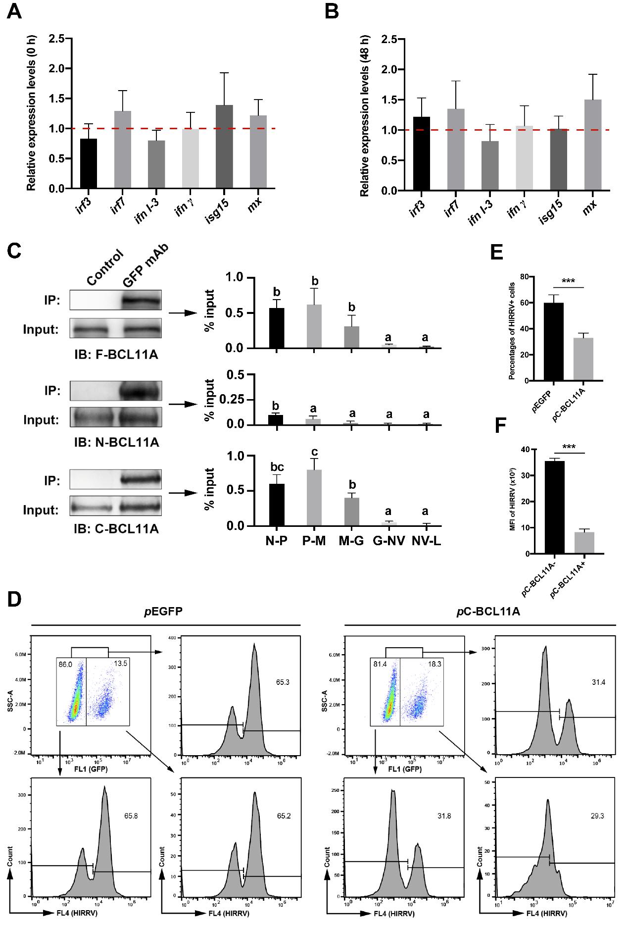图2 牙鲆BCL11A通过与HIRRV gRNA结合抑制HIRRV的复制与增殖
