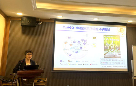 曹晓风院士详细而生动地介绍了其团队近年来以水稻和拟南芥为材料针对表观遗传调控机理的研究成果,包括鉴定了多个表观遗传调控的关键因子,涉及组蛋白去甲基化、小RNA以及DNA甲基化等,以及上述因子在调控植物生长发育、高温适应和转座子活性等方面的作用机制。曹院士还以“南稻北移”为背景,介绍了水稻适应冷驯化过程的分子机理以及获得性遗传的表观调控机制。与会师生围绕“传统遗传学和表观遗传学的联系”、“表观遗传调控与适应性进化”以及“植物逆境记忆背后的表观遗传网络”等方面积极提问,分享畅谈。