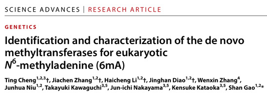 17. Wang, Y., Nan, B., Ye, F., Zhang, Z., Yang, W., Pan, B., Wei, F., Duan, L., Li, H., Niu, J., Ju, A., Liu, Y., Wang, D., Zhang, W., Liu, Y., and Gao, S., Dual modes of DNA N6-methyladenine maintenance by distinct methyltransferase complexes. Proceedings of the National Academy of Sciences, 2025. 122(3): e2413037121.