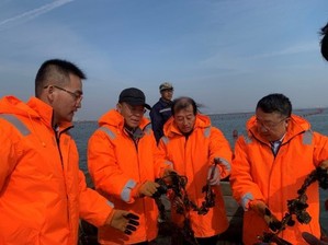 2021年10月18日,李琪教授、杨爱国研究员、李成林研究员、刘士凯教授、徐成勋工程师莅临荣成桑沟湾海洋牧场指导贝类遗传育种研究室验收工作,此次验收项目包含长牡蛎“海大1号”、“海大2号”、“海大3号”等品种及长牡蛎壳白、长牡蛎日本群体等选育品系。