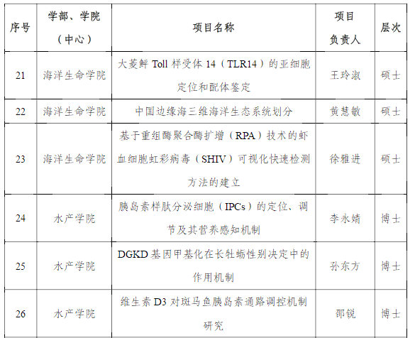 根据《中央高校基本科研业务费专项资金中国海洋大学项目及资金管理办法(修订)》(海大字〔2016〕27号)和《关于申报2021年中国海洋大学研究生自主科研项目的通知》(研院字〔2021〕56号),经个人申请、研究生院审查、专家评审等环节,本年度研究室同学获得项目情况如下: